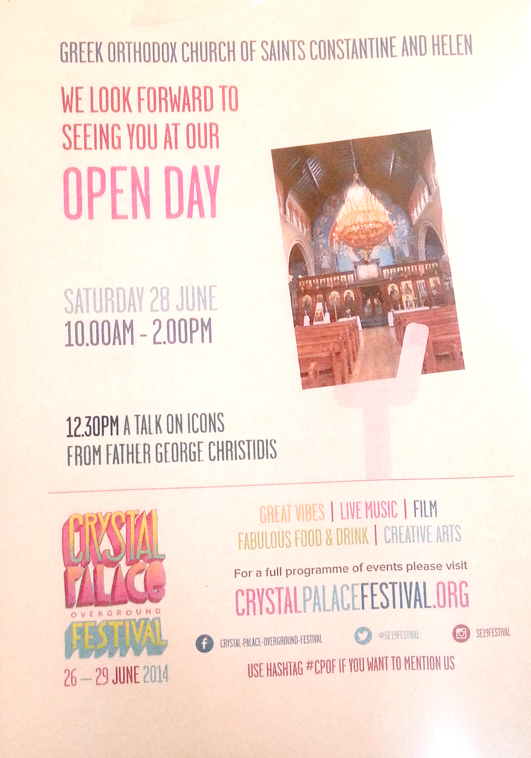 There will be an Open Day at Sts Constantine and Helen Greek Orthodox Church from 10am to 2pm as part of the Crystal Palace Festival.