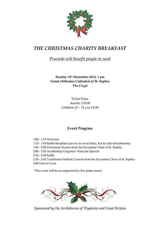 December 3, 2014 MMR Christmas Charity Breakfast At the Cathedral of the Divine Wisdom (St. Sophia), Bayswater Sunday 14th December 2014 Facebook event Share this: Share on X (Opens in new window) X Share on Facebook (Opens in new window) Facebook Share on Pinterest (Opens in new window) Pinterest Print (Opens in new window) Print Email a link to a friend (Opens in new window) Email Like Loading... Related